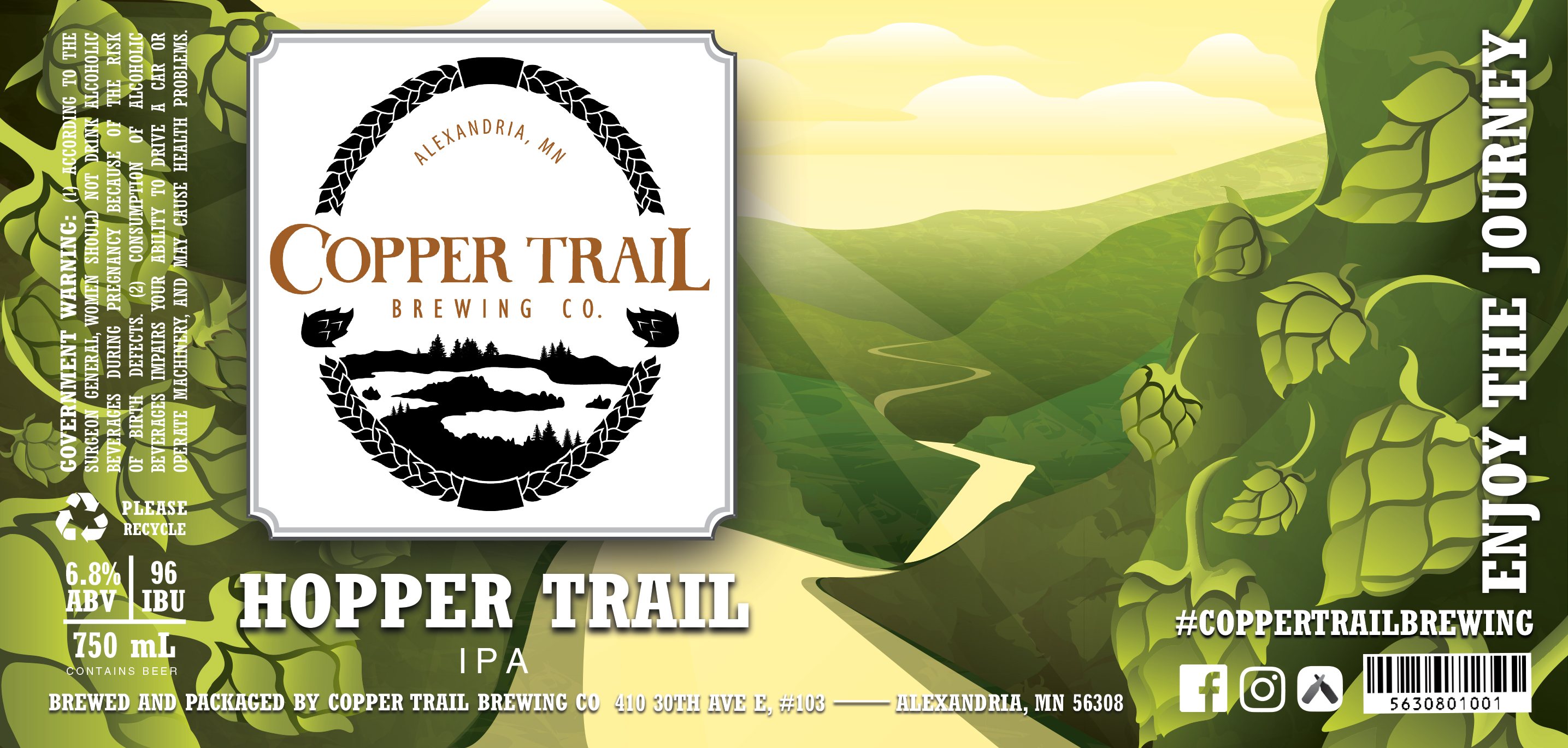 In September of 2017 I was commissioned by Copper Trail Brewing Co of Alexandria, MN. They were interested in my artwork and wondering if I could design several labels for their large crowler cans for mass distribution. Having just graduated college with my A.A.S in Graphic Design, I immediately took to the thrill of freelancer. The beer artwork had me feeling like I had my own brewery.